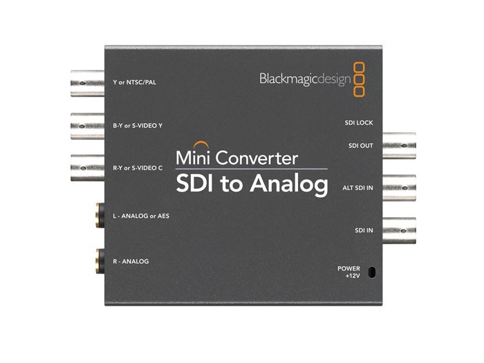 The perfect way to convert from SD and HD‑SDI to analog component, s‑video or NTSC/PAL composite. Mini Converter SDI to analog supports all SD and HD input formats up to 1080p30 and includes a down converter for when you need to convert from HD to standard definition analog formats such as s‑video and composite. Audio can be de‑embedded to balanced analog or AES/EBU. Mini Converter SDI to Analog is ideal for converting to older analog equipment when you don’t need the extra cost of the 6G‑SDI 4K model.