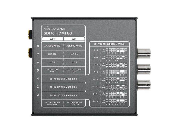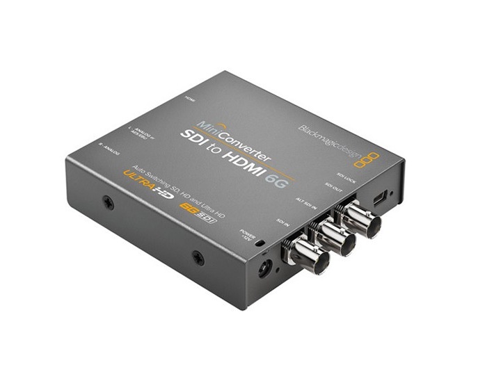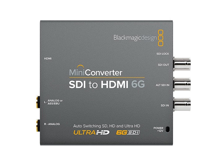 Mini Converter SDI to HDMI 6G lets you convert from SDI to HDMI in SD, HD, and Ultra HD formats while de-embeding audio to HDMI, AES/EBU or balanced analog audio. You also get advanced features such as down conversion for monitoring Ultra HD on HD HDMI monitors as well as built in 3D LUTs plus HDMI instant lock for instant video display when an SDI input is connected!