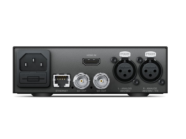 Convert from HDMI to 12G-SDI. Works with all video formats including SD, HD, 6G and 12G-SDI rates and includes an up converter for converting HD to Ultra HD. Embed audio from balanced analog or AES/EBU and timecode input. Ideal for converting HDMI consumer cameras to SDI, or adding SDI outputs to computers with HDMI connections.