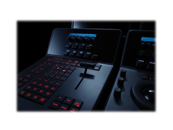 The Resolve control surface incorporates a slide-out keyboard that is useful when naming or renaming files, and it can be neatly tucked away when not in use. All functions are accessible via separate keys, such as the reference keys, and the fader T-bar that allows you to wipe between reference stills.