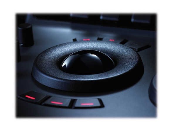 The Transport panel features the timeline transport controls and a jog/shuttle control, as well as a numerical keypad and associated function keys. The Transport panel can be positioned on either side of the Trackball panel.