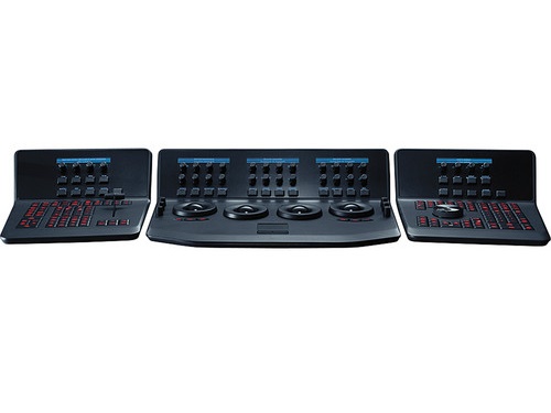 The DaVinci Resolve Advanced Panel from Blackmagic Design is a significant step up in functionality from the Micro or Mini panel. It consists of a main console and two auxiliary consoles, one on each side, as well as a slide-out keyboard in the center console. It enables one-touch access to virtually every control and parameter within the DaVinci Resolve software.