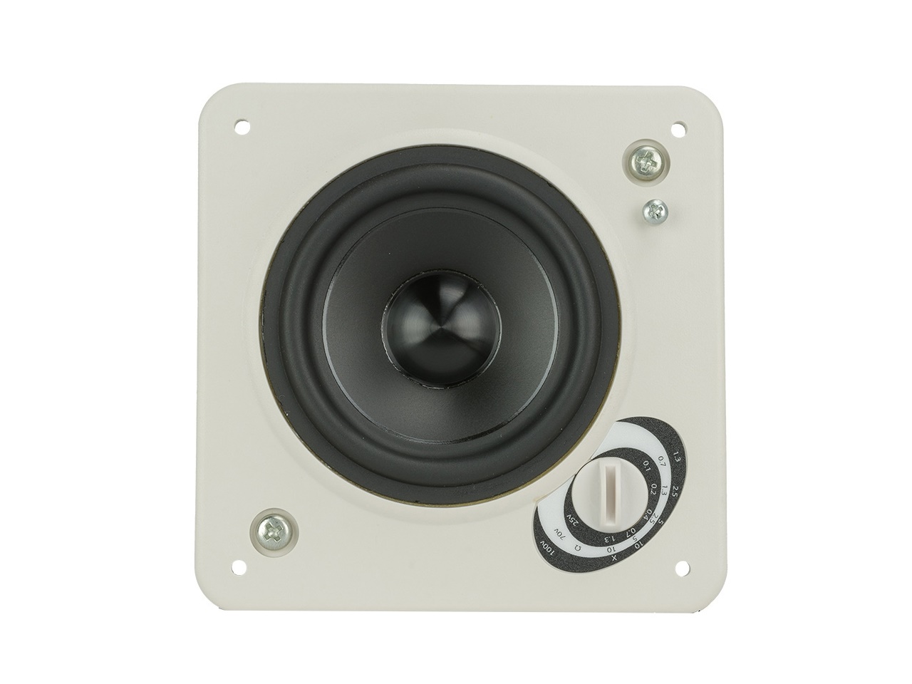 The IW31-EZ is a premium full-range 3-inch in-wall speaker for applications requiring 8 ohm or distributed audio solutions. The IW31-EZ incorporates a low profle grille with a total visible footprint of a 5 inch square and an integrated backcan and driver design for an ultra compact installations in wall plates. The speaker includes a rapid installation, blind-mount fixed-wing mounting mechanism with constant tension design affixing to wall thicknesses ranging from 0.1 inch (2.5 mm) to 1.5 inch (38.1 mm). The in-wall speaker includes a six-position tap switch with a transformer bypass position. Mounting hardware is included and features a fast and secure constant tension Speed Wing™ mounting system. All components in the IW31-EZ are completely weatherized for indoor and outdoor applications. Conduit connector, paint mask and wire nuts are included.