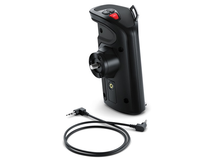 The Blackmagic Design URSA Mini Handgrip is compatible with all versions of the URSA Mini and URSA Mini Pro cameras. It provides record start/stop, iris control, and focus control buttons in an ergonomic design with a rubber thumb rest. It attaches to the side of the camera via a standard rosette mount and over an included LANC cable, and it’s powered over the cable. It can also be relocated to the front of the camera when used with the URSA Mini Shoulder Kit.