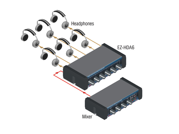 Common applications include retail listening stations, rehearsal rooms, houses of worship, recording and broadcast studios, and installations in museums or educational facilities. The EZ-HDA6X is suited to any scenario that requires multiple independent headphone monitors from a single stereo source. Its small footprint and 1/3 rack width make it simple to integrate into crowded racks or console furniture.