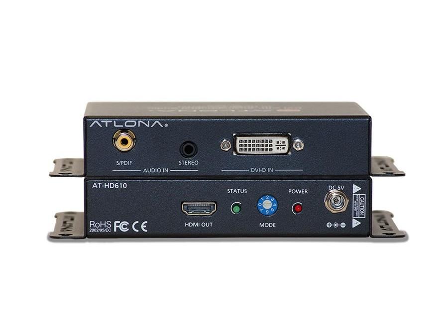 If you want to play your favorite computer game on your HDTV, or watch your just uploaded video, the AT-HD610 allows you connect a DVI-D cable and a 3.5 mm/SPDIF audio cable to a TV from a computer with a single HDMI cable. The AT-HD610 enables you to embed a DVI, 3.5mm Audio, or an SPDIF audio connection into one HDMI cable which allows easy integration of audio and video to audio receiver or display from a computer. Easy to install in a rack via mounting brackets or standard mounting to a surface. It features EDID Learning mode and it is HDCP 2.0 compliant.