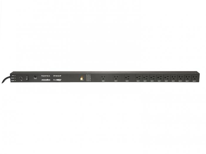 The VT1512-IP is a BlueBOLT enabled slim form factor vertical rack power conditioner and power sequencer. The VT1512-IP is a full featured power conditioner providing protection and filtration for