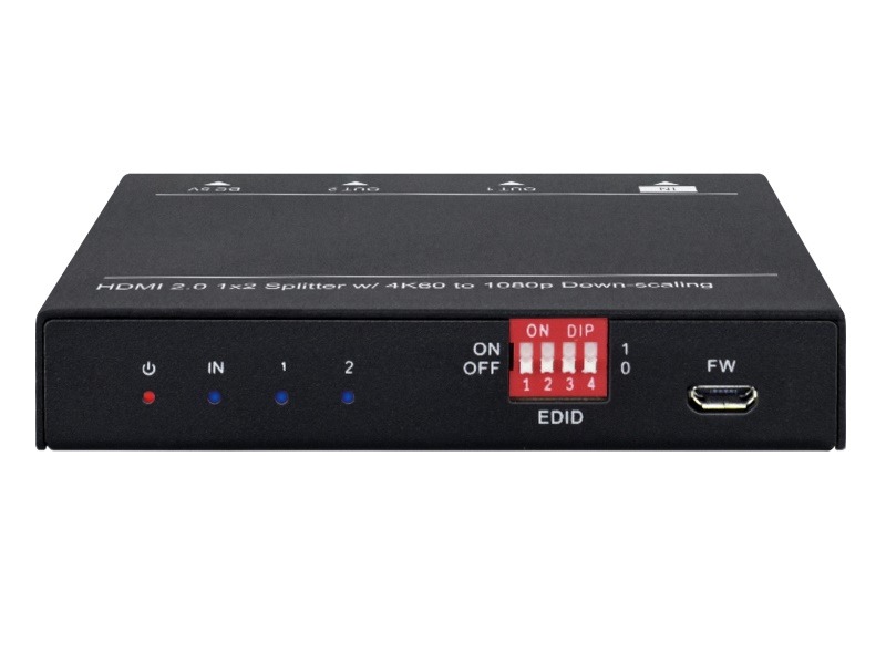 The DXE-122A-DS 1×2 HDMI 2.0A 4K Splitter with Auto EDID Management provides one of the most advanced HDMI splitter solutions by which the Ultra High Definition video and high quality audio can be transmitted to multiple locations without losing quality. The DXE-122A-DS supports all 3D formats and true 4K2K video. EDID management can be one of the most important capabilities to a splitter. Taking it one step further Aurora has added the ability to customize EDID for complete EDID emulation. This allows full control over the source and what it will be allowed to do. The DXE splitter have firmware upgrade capability via the USB port ensures compatibility now and in the future. With 48bit deep color video and high definition audio support, the DXE-122A-DS is suitable for high quality HDMI broadcasting, conference room, digital signage and education applications.