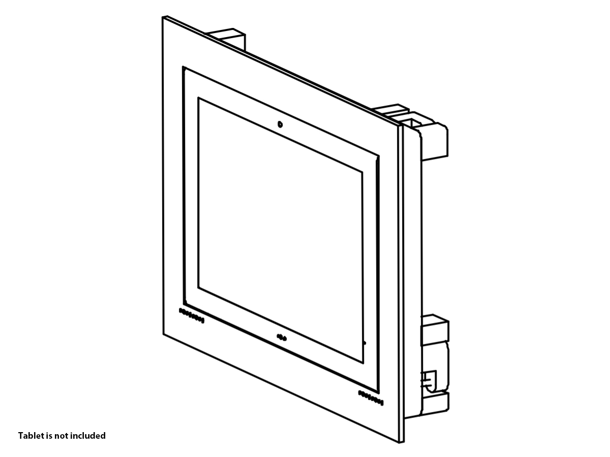 The “WS RETROFIT FOR URC TKP-9600” is an adapter for in-wall nearly flush retrofit installation of a TKP-9600 touch screen. The “WS RETROFIT FOR URC TKP-9600” firmly mounts the TKP-9600 touch screen while allowing easy insertion, removal and operation.