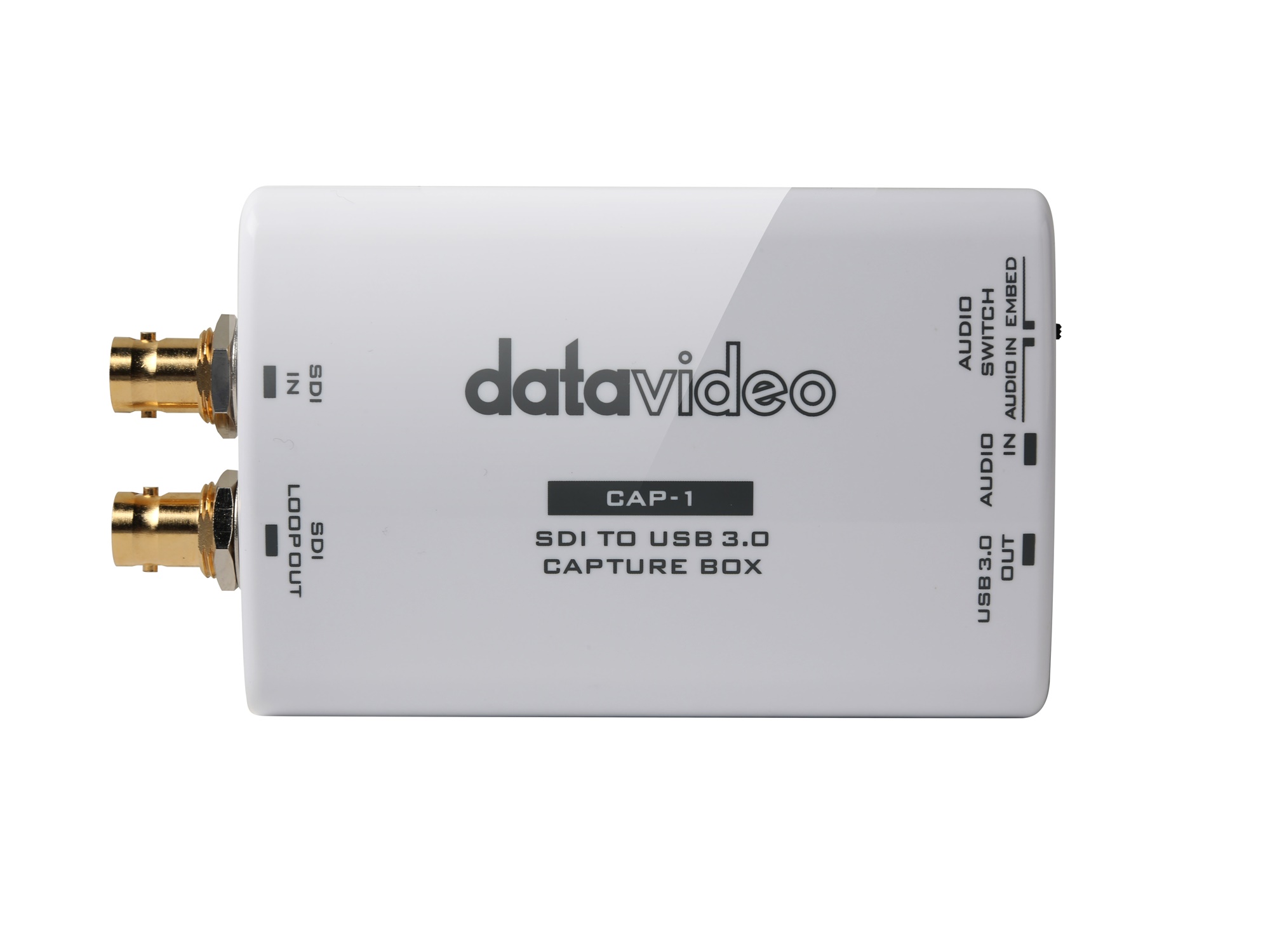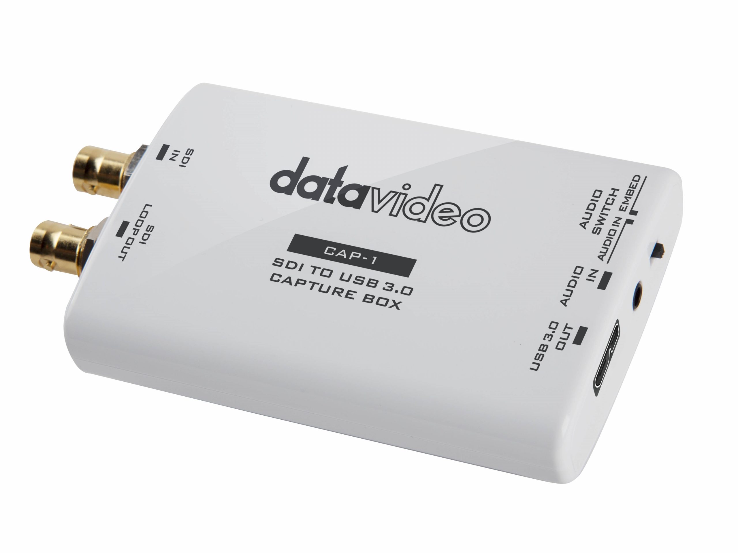 Datavideo CAP-1 is an SDI to USB 3.0 Capture Box for supporting fast capturing up to 1080p50/60 input video resolution. Moreover, it supports plug & play operation. Datavideo CAP-1 supports many OS platforms. Moreover, it provides AUDIO IN interface for connecting external connected AUDIO IN source. Furthermore, the CAP1 provides AUDIO IN/EMBED audio source toggle switch for users to select for different audio source. The embedded audio source or the external connected Audio in source can be used for the audio source of the CAP-1. It gives higher flexibility for CAP-1 compared to general UVC devices.