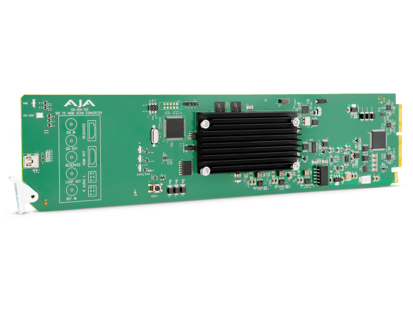 AJA’s OG-ROI-SDI is an openGear card that allows exceptionally high-quality scan conversion of SDI inputs to 3G-SDI and HDMI baseband video outputs. With incredible region-of-interest image scaling as well as aspect ratio and frame rate conversion, OG-ROI-SDI fulfills the growing need to properly incorporate extractions from 3G-SDI sources into 3G-SDI and HDMI feeds without sacrificing budget or space.