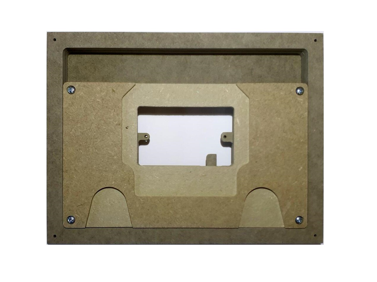 The “WS SB FOR C4 T4 10”” is an adapter for in-wall flush installation of a Control4 T4IW10 touch screen in solid board walls. The “WS SB FOR C4 T4 10”” firmly mounts the touch screen while allowing easy insertion, removal and operation.