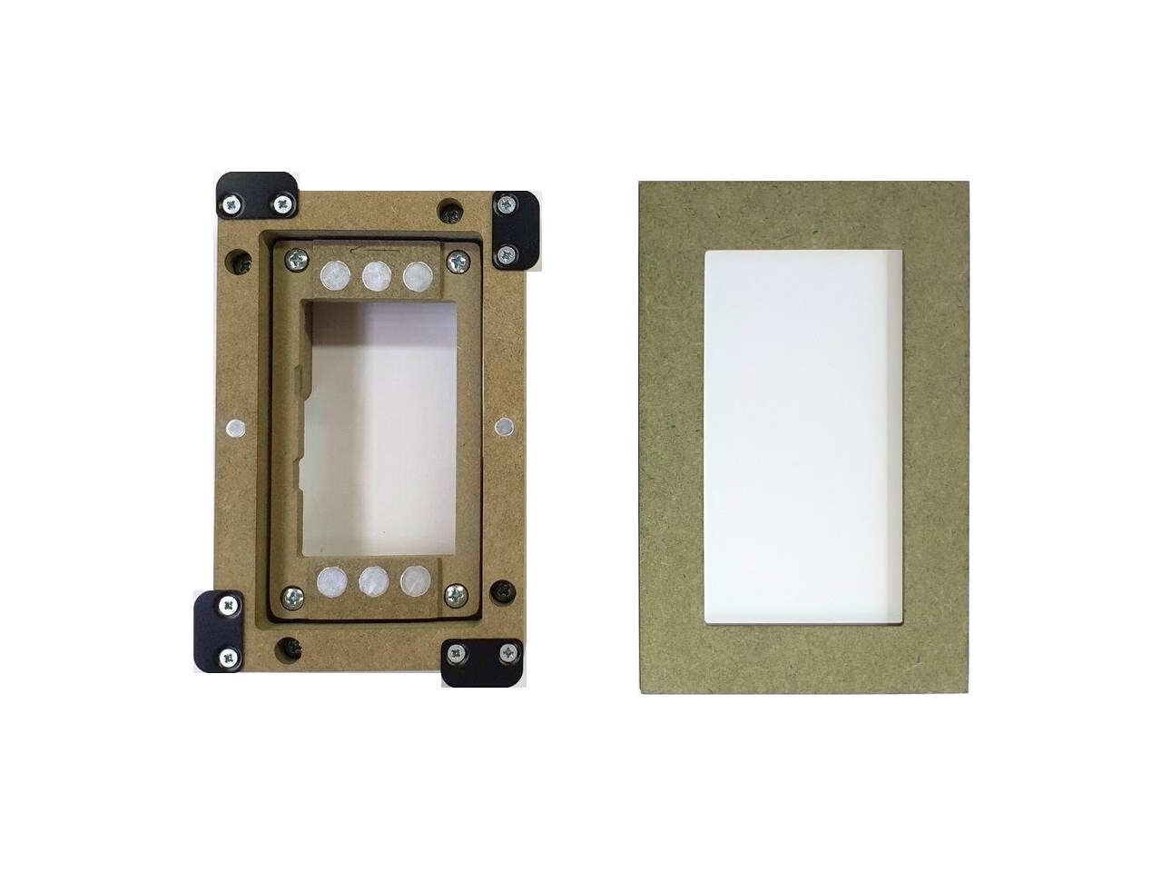 The “WS RETROFIT FOR TSW-570” is an adapter for in-wall nearly flush retrofit installation of a TSW-570 touch screen. The “WS RETROFIT FOR TSW-570” firmly mounts the TSW-570 touch screen while allowing easy insertion, removal and operation.