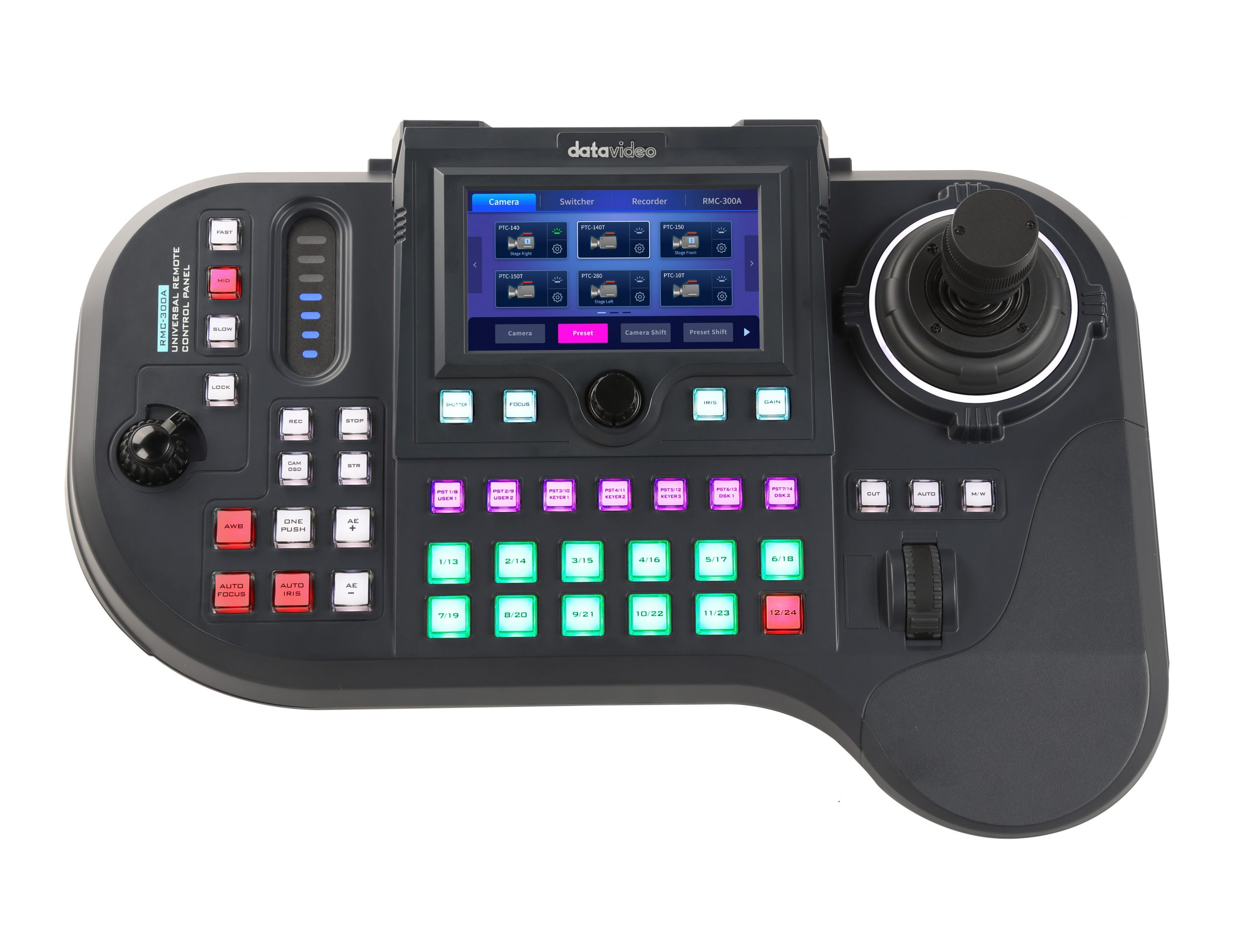Datavideo RMC-300A is a multi-functional Multi-Camera Controller capable of controlling up to 24 PTZ and block cameras via DVIP or 8 PTZ and block cameras via RS-422. With DVIP and the RS-422 interface, the RMC-300A allows you to configure and control all Datavideo cameras, PTR-10T Robotic Head, SE-3200 Switcher and HDR-80/90 ProRes Recorder.