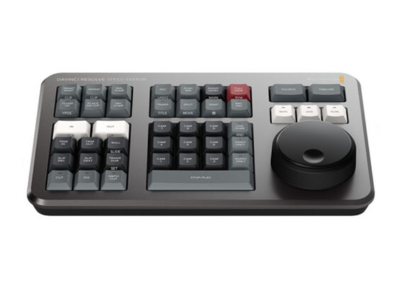 The DaVinci Resolve Speed Editor is a compact hardware editing console designed to accelerate timeline work in DaVinci Resolve Studio. It pairs a tactile Search Dial and dedicated transport controls with 43 pre-labeled keys to reduce dependence on mouse-driven edits. The unit is small enough for location work while providing the essential controls editors need for fast cutting and trimming.