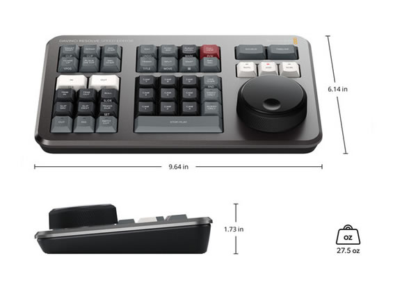 The unit is designed for immediate use with minimal setup – pair via Bluetooth or plug in with USB-C to charge and control. The metal dial and robust push buttons provide a durable feel appropriate for daily editorial use. The included DaVinci Resolve Studio license expands system capability and delivers a full set of color grading and post tools to complement the hardware speed gains.