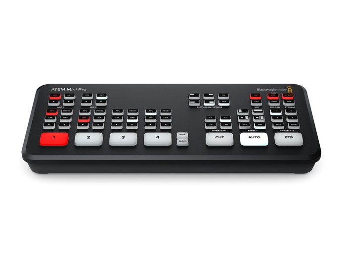 ATEM Mini Pro is fast to set up and easy to use. It includes 4 standards converted HDMI inputs, USB webcam out, HDMI out, Fairlight audio mixer with EQ and dynamics, DVE for picture in picture, transition effects, green screen chroma key, 20 stills media pool for titles and free ATEM Software Control. ATEM Mini Pro also includes direct recording to USB flash disks in H.264 and direct streaming via Ethernet to YouTube Live and more. There’s also a multiview with 4 cameras, media, preview and program plus status of recording, streaming and audio.