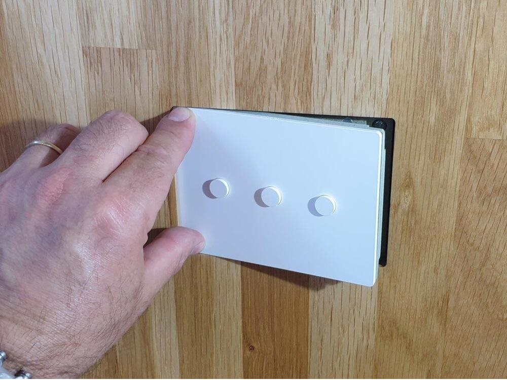 The “WS SB FOR LUTRON ALISSE 3C” is an adapter for in-wall flush installation of a LUTRON Alisse wall control triple column in solid board walls.