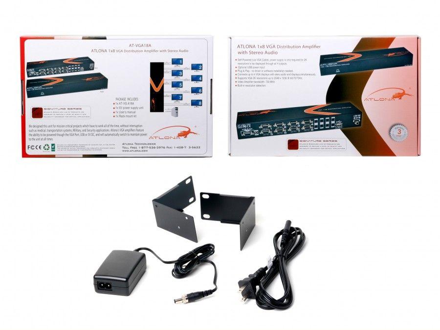The Atlona Technologies AT-VGA18A is a great solution when uninterrupted video is required. The multiple power solutions give the user security of having backup power in case of an emergency. This Distribution amplifier can also out put video in high resolutions up to 2k (2048 x 1536) for displaying content in standard or high resolutions.