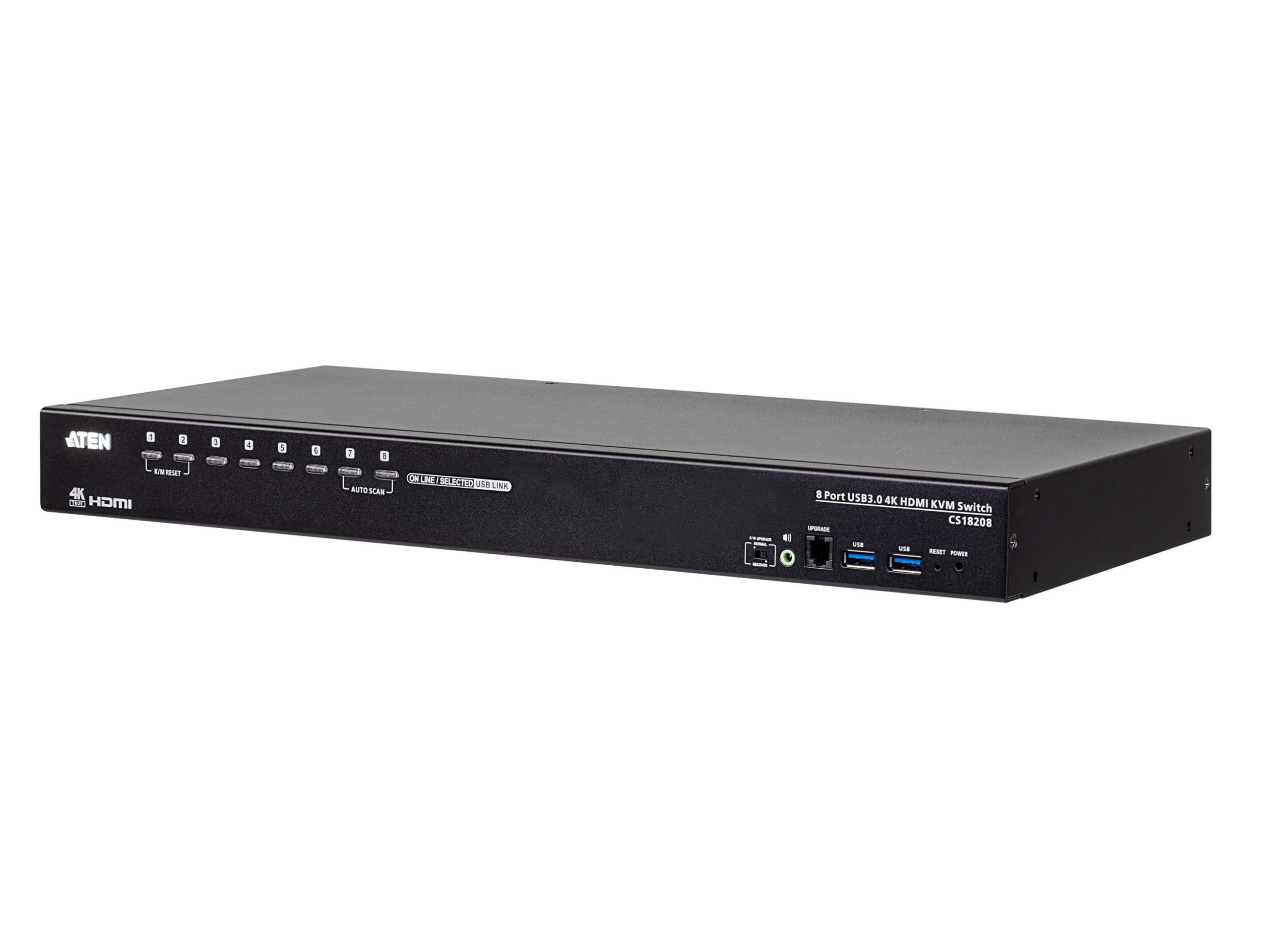 The ATEN CS18208 8-Port USB 3.0 4K HDMI KVM Switch can effectively access and control up to 8 HDMI computers from a single USB keyboard, USB mouse, and HDMI monitor console. The CS18208 supports high video quality up to 4K DCI (4096 x 2160 @ 60Hz), presenting crystal-clear visuals.