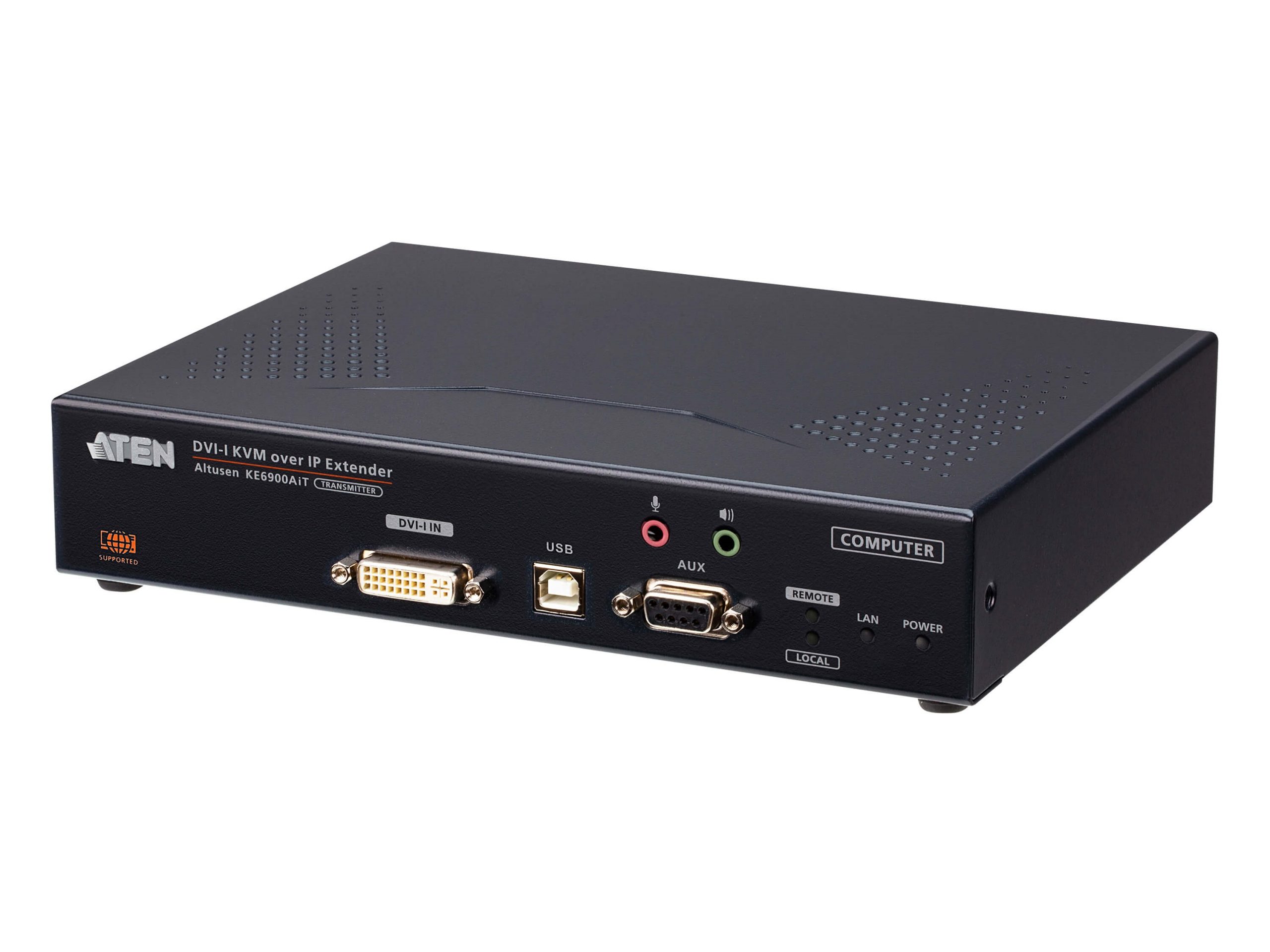 The KE6900AiT are high performance IP-based transmitters that, when used with receivers (e.g. KE6900AR), provide console access from a separate location. The setup allows extended access of computer systems remotely via USB consoles (USB keyboard, USB mouse, DVI monitor) over intranet and internet, enabling users to place the computer system in secure and temperature controlled environments, which maybe isolated from users’ workstation.