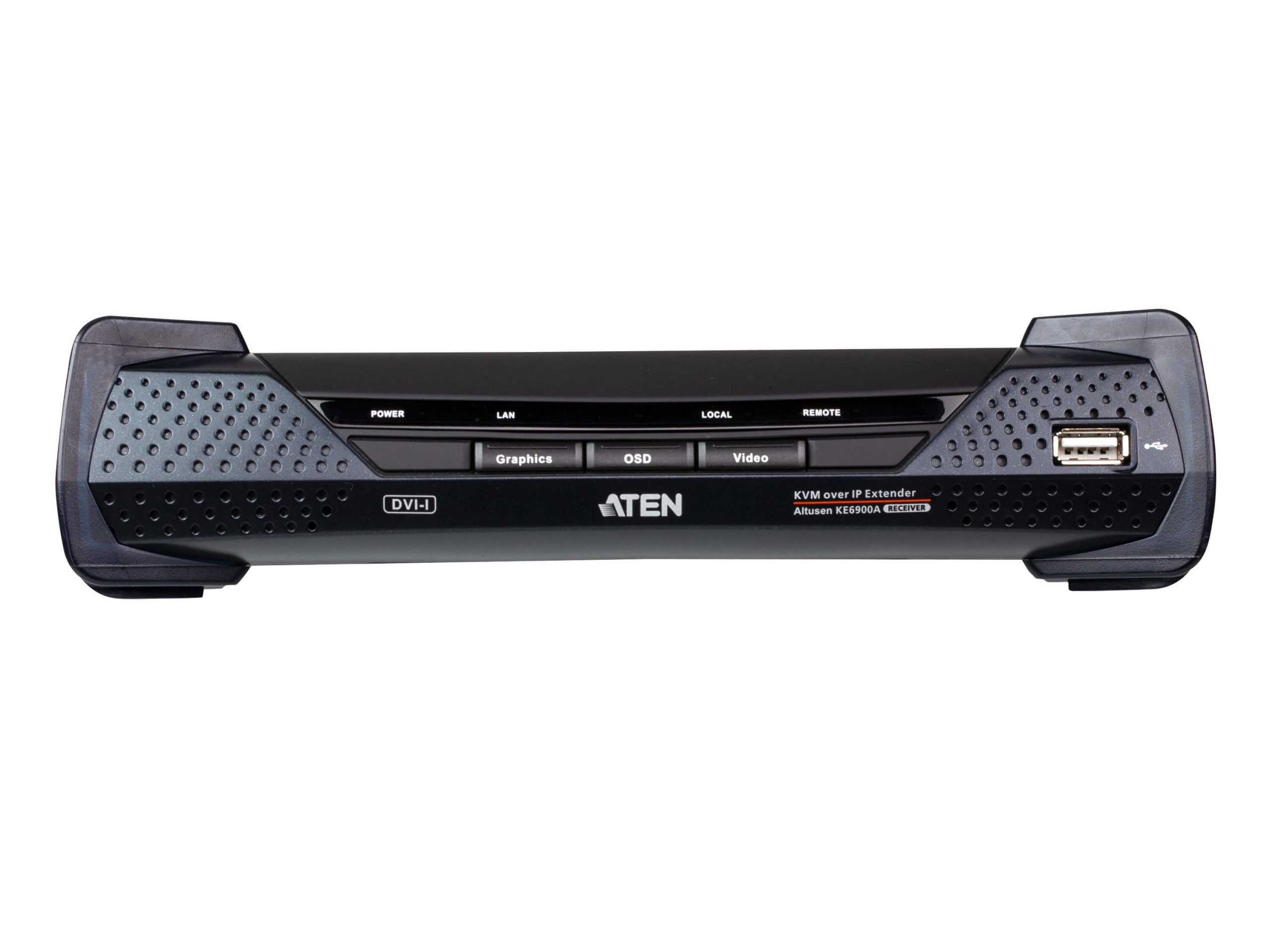 The KE6900A DVI-I Single Display KVM over IP Extender supports one DVI display at each end and provides lossless and low latency video transmissions up to 1920 x 1200 @ 60Hz.