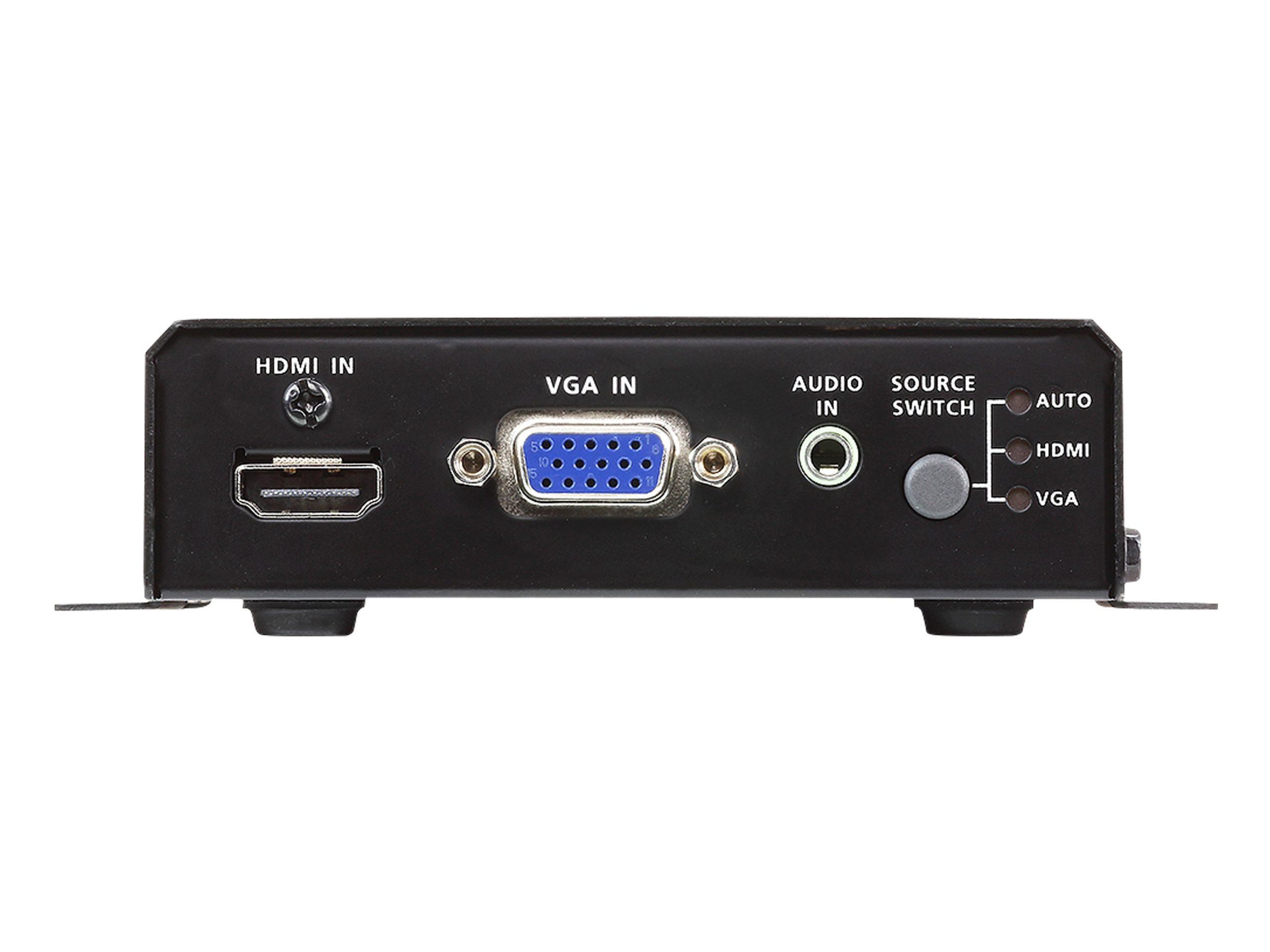 - Easily switches sources among 3 modes (HDMI/VGA/AUTO) via a pushbutton