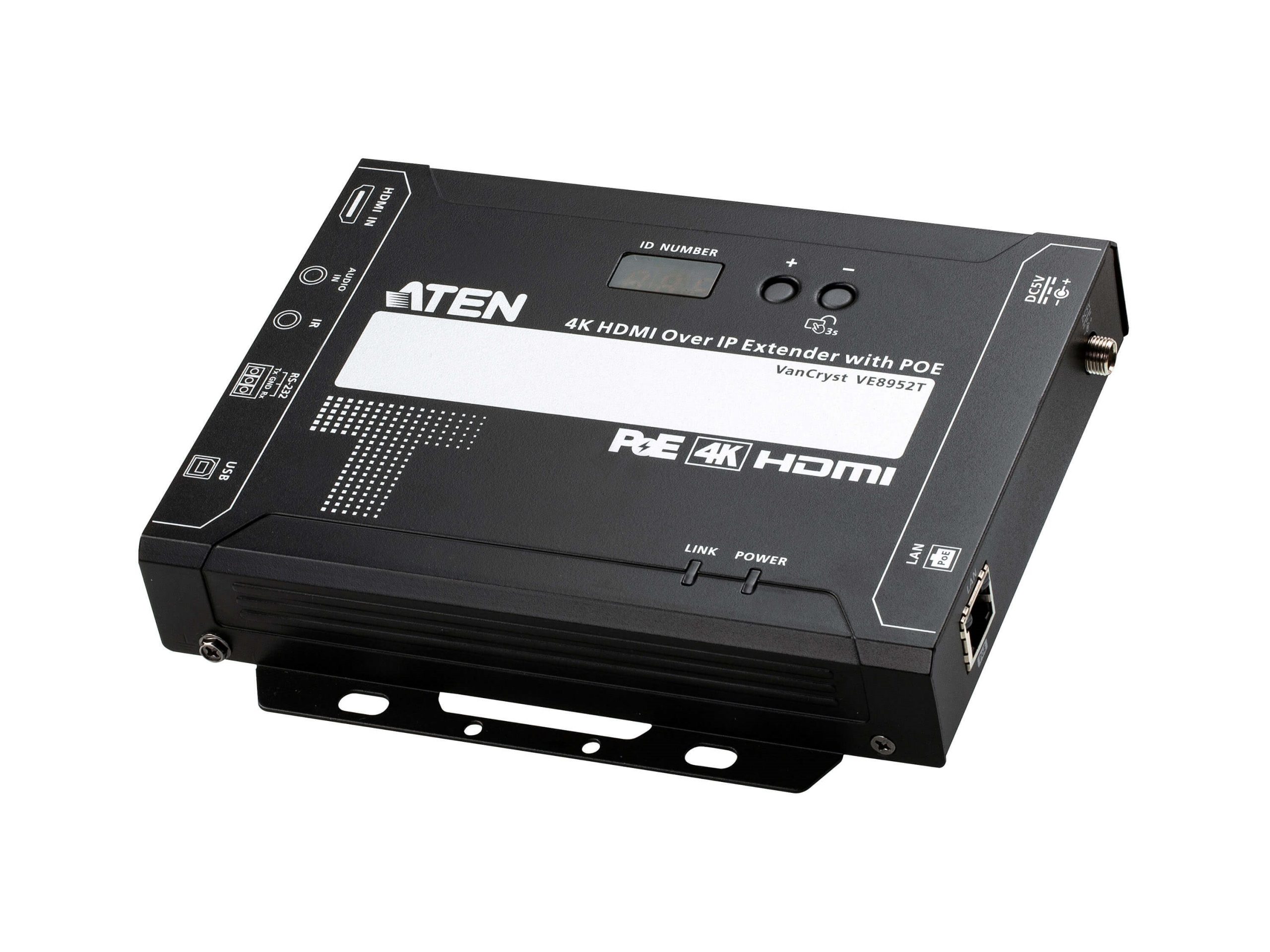 The ATEN VE8952T 4K HDMI over IP Transmitter with PoE delivers visually lossless 4K AV signals with low latency over long distance via a standard Gigabit network. It is an effective and easy-to-use solution that directly addresses the challenges system integrators encounter when deploying AV over IP.