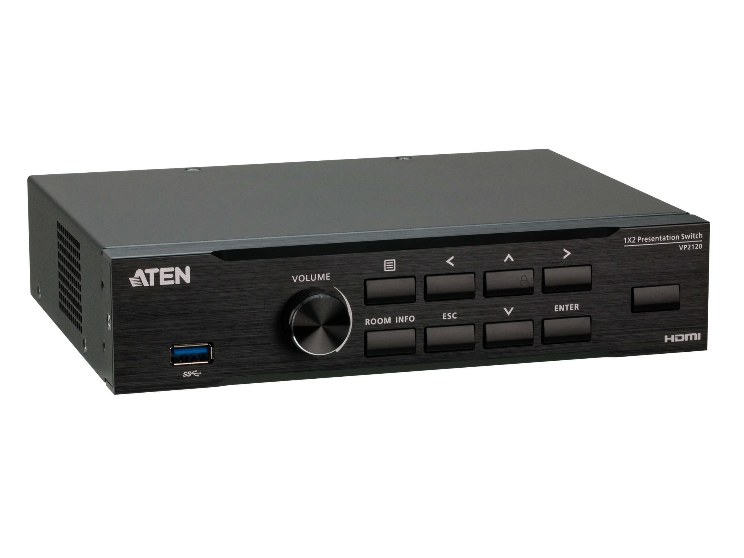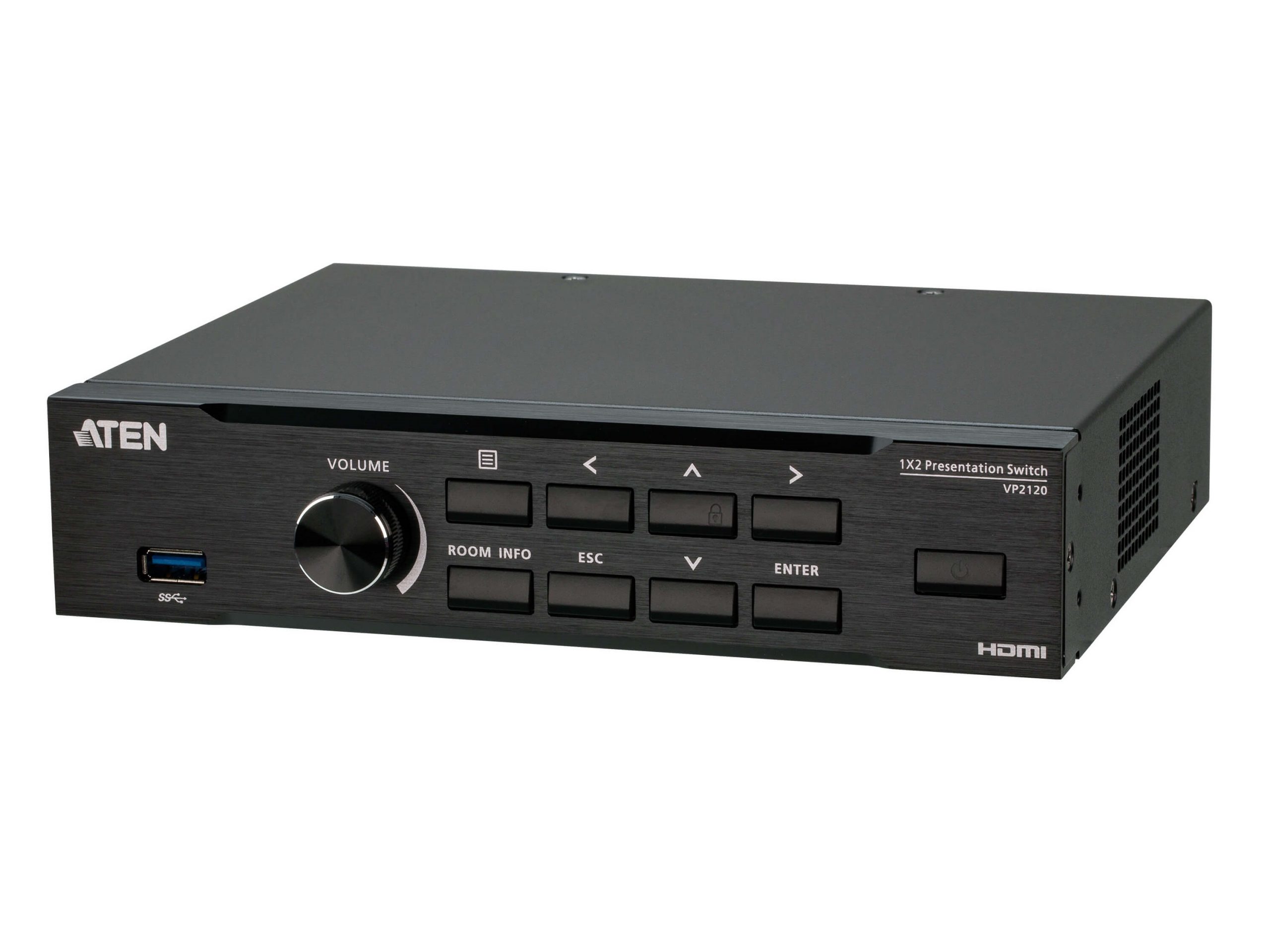 The VP2120 is a Seamless Presentation Switch that integrates video matrix switch, quad-view multistreaming, audio DSP, and idea-sharing platform into one compact device. With the seamless switching between streamedin sources, the online idea exchanging features, and the network capability that enables the wireless connection for mobile devices, the VP2120 and ATEN Video Presentation Control App empower wireless BYOD collaboration anytime when a short catch-up, quick meeting, instant brainstorm, stand-up, or ad hoc call is needed.