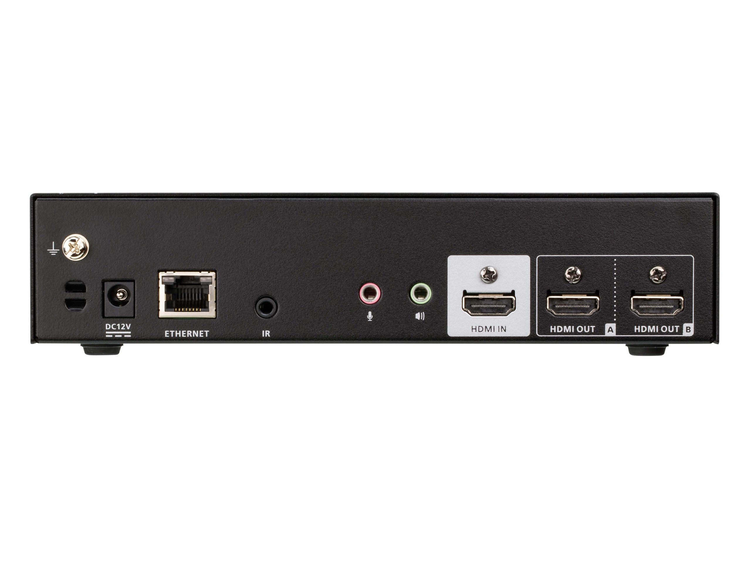- Multiple control method via front-panel pushbuttons, web GUI, OSD, IR remote, and mobile app