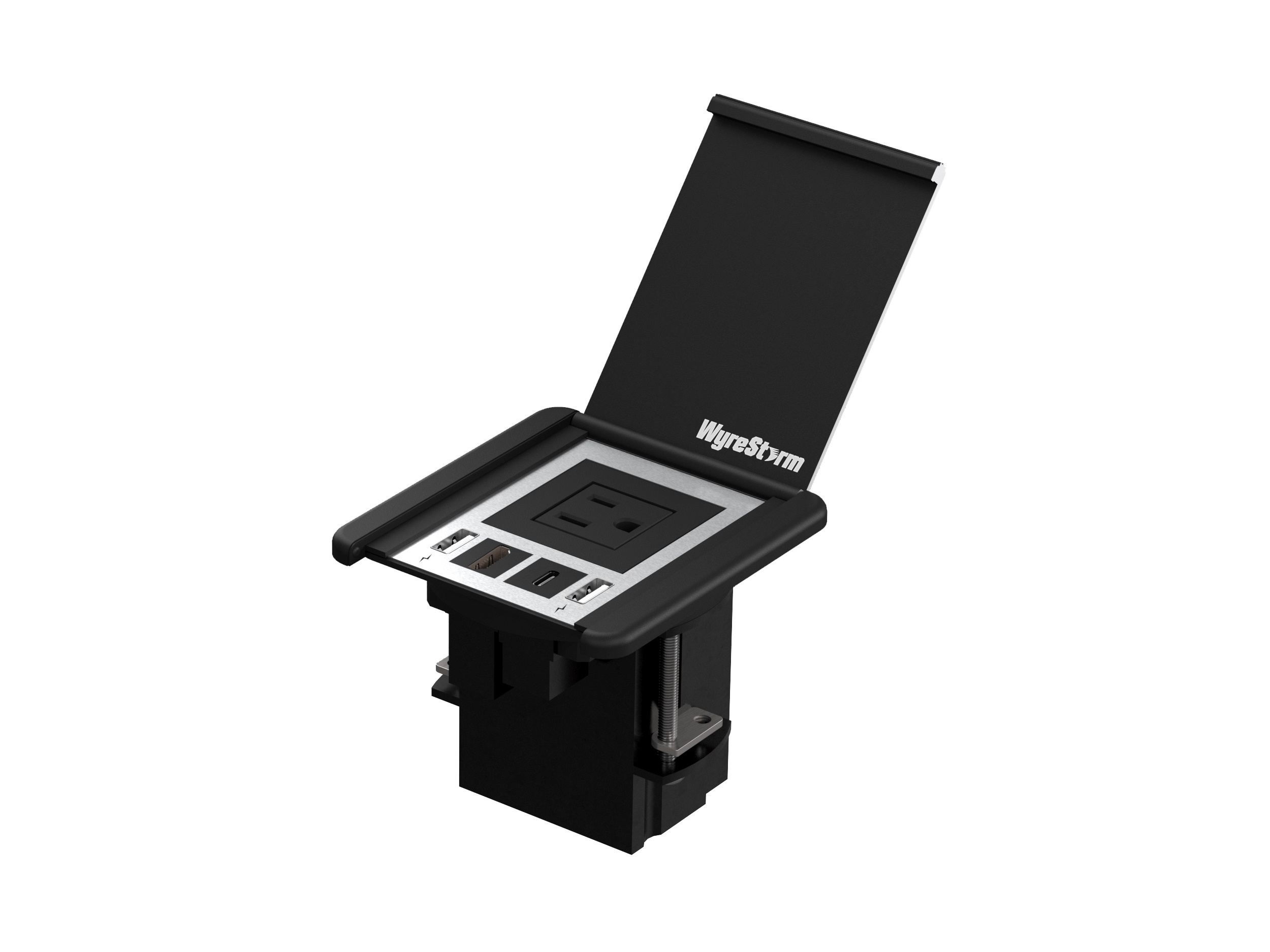 - Compact design allows for discrete installation into any desk or table