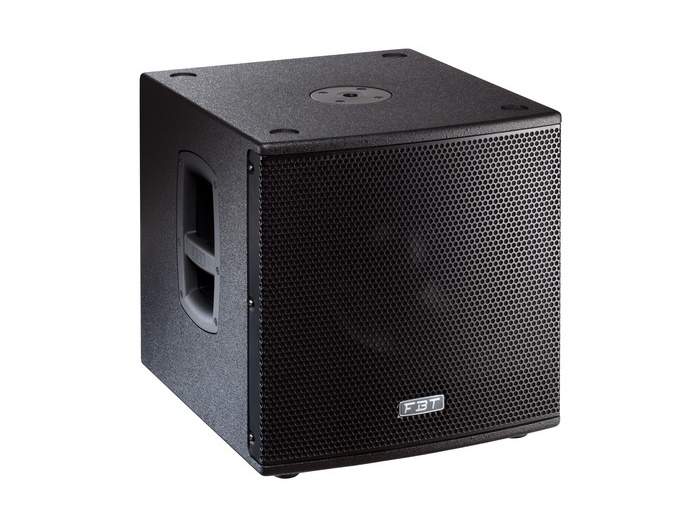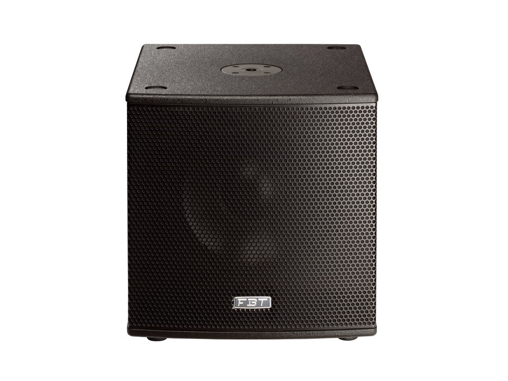 The FBT SUBLINE 112SA is an extremely compact bass-reflex design subwoofer with high SPL and punch. The FBT SUBLINE 112SAfeature 0,59″ birch plywood construction covered in a scratch resistant black paint with two aluminum carrying handles; an M20 top mounted stand adapter allows satellite speakers, such as the FBT speaker series and others, to placed above the subwoofer cab. The FBT SUBLINE 112SA features a 12″ high excursion magnet woofer with 3″ voice coil.