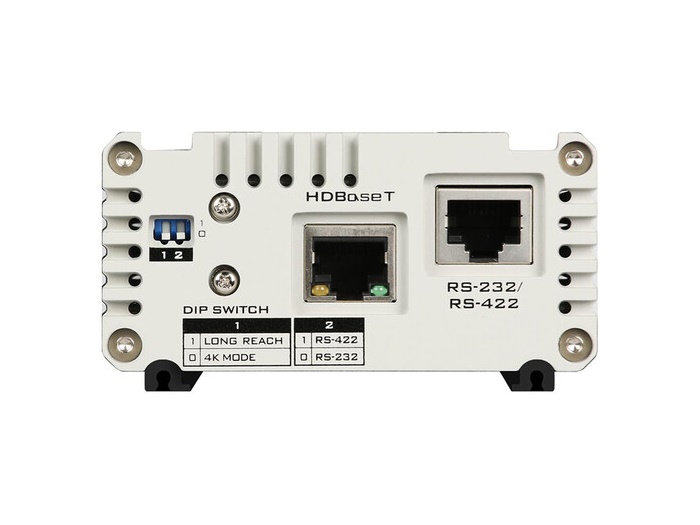 The HBT-12 is an HDBaseT receiver designed to interface between transmitting and receiving devices. The receiver accepts up to 4K image quality video.