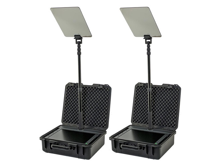 The height of the stand and the angle of the prompting glass are fully adjustable to match the eye-line of the presenter.
