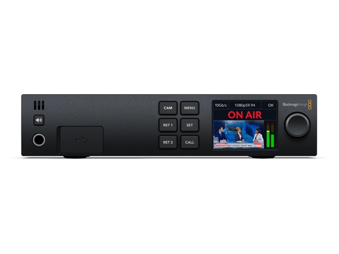 With 10G Ethernet on Blackmagic Studio Converter and Blackmagic Studio Camera 4K Pro G2, you can connect all camera signals using one Ethernet IP link connection. That means the camera feed, return program feed, timecode, reference, tally, talkback and control are all sent down the single cable. That’s the same benefits of SMPTE fiber, but the standard 10G copper Ethernet cable is much lower cost. The Blackmagic Studio Converter allows breakout of all the video, audio and talkback connections at the studio end. It also includes a massive power supply that powers the camera down the Ethernet cable, so you don’t even need a power source near the camera!