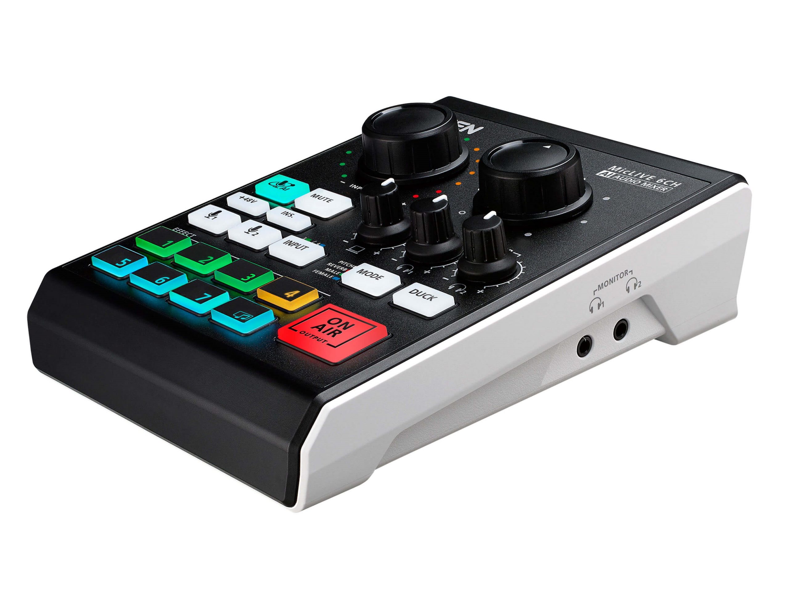 - The industry’s first AI-optimized audio mixer – enhances microphone audio quality with enhanced acoustic models, SmartEQ, so anyone can have a real-time, high-quality recording