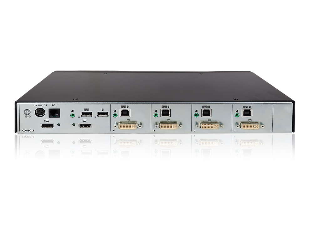 The ADDERView Secure Multi-Viewer switch is designed to give operators managing mission-critical systems, simultaneous real-time access of up to four computers from a single KVM workstation. Users can instantly take control of the target PC by simply moving the mouse between windows.