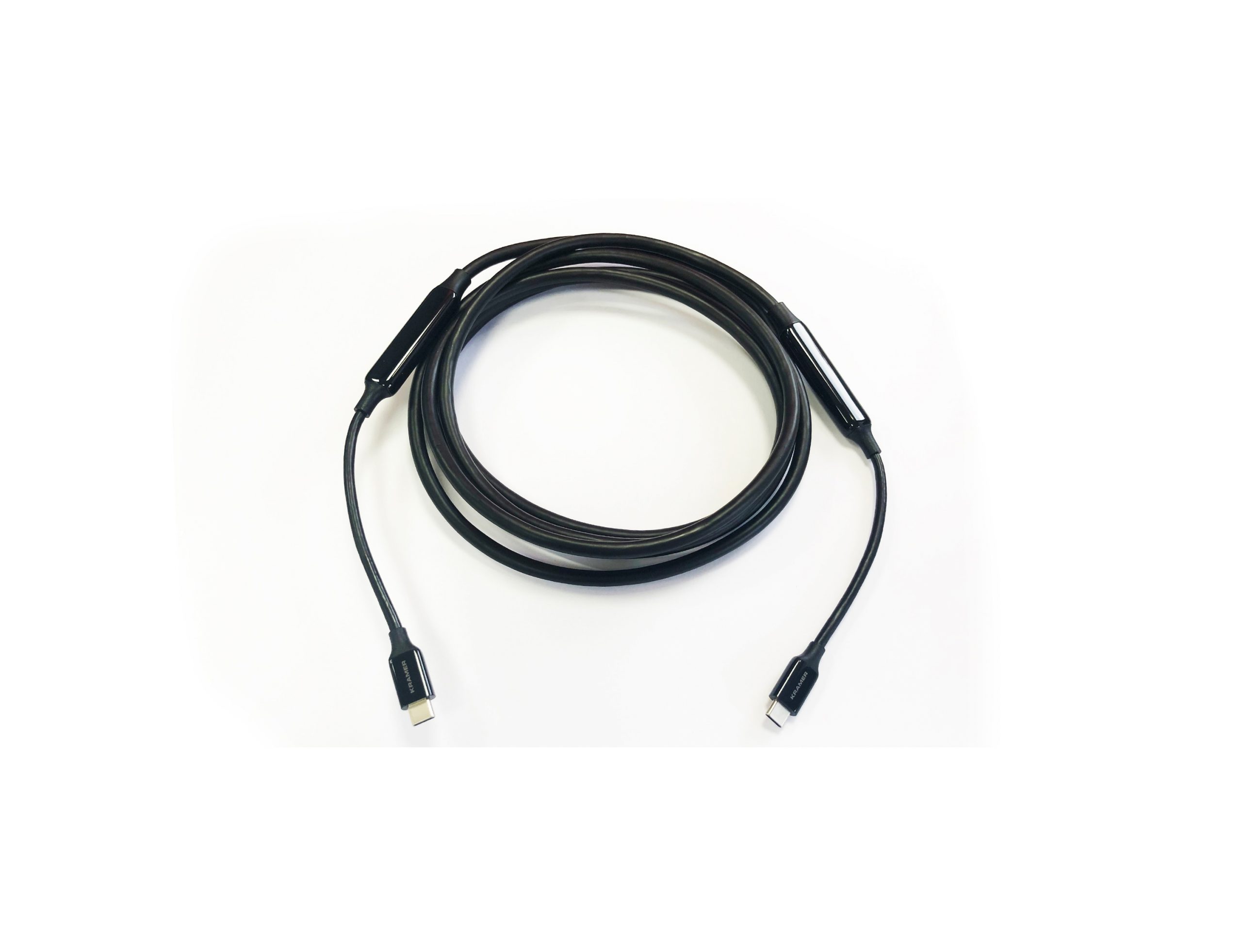 Kramer’s CA-USB31/CC is a Bi-directional active extender cable designed to extend USB C full feature signals. Typically, USB C full feature signals have a maximum length of about 1 meter (3 feet), CA-USB31/CC enables cable lengths of up to 4.7m (15ft).