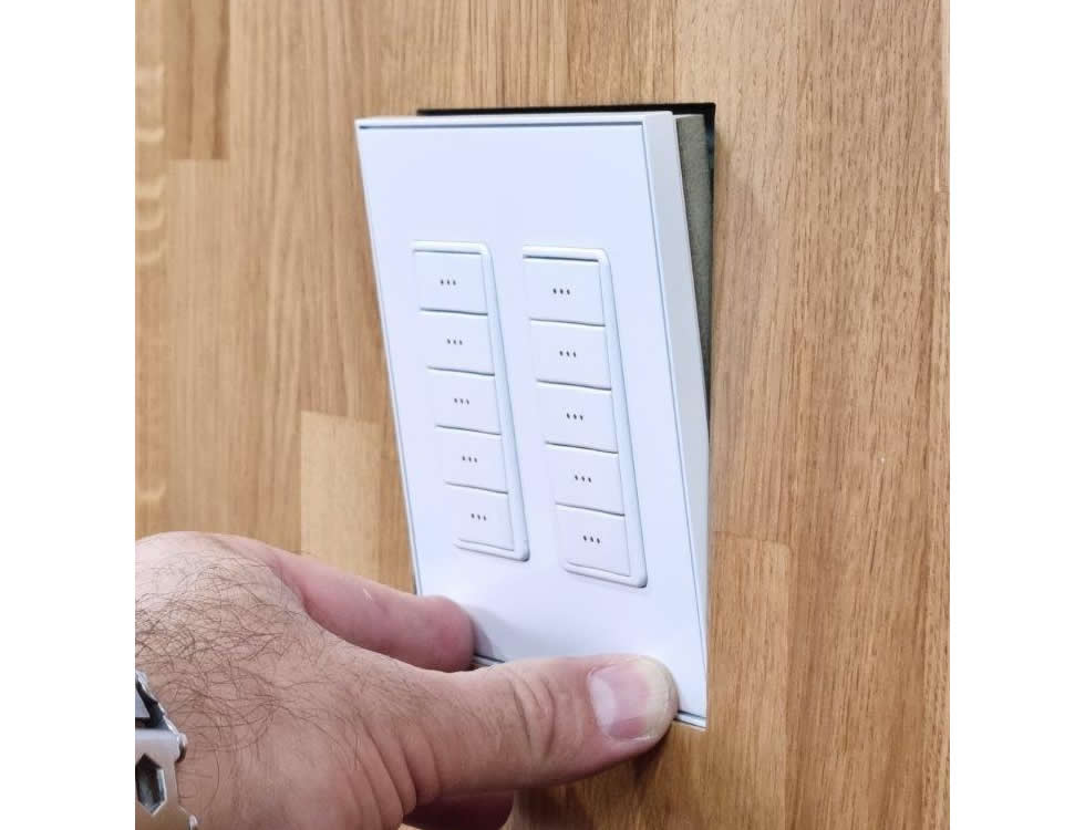 Common use cases include retrofit and new-construction installations where a keypad must sit flush in solid board walls, AV system deployments that require easy service access, and commercial interiors where consistent face alignment is required. The adapter reduces installation time by providing a repeatable mount and depth calibration for each keypad location. It is suited to conference rooms, control rooms, meeting spaces, and premium residential installations.