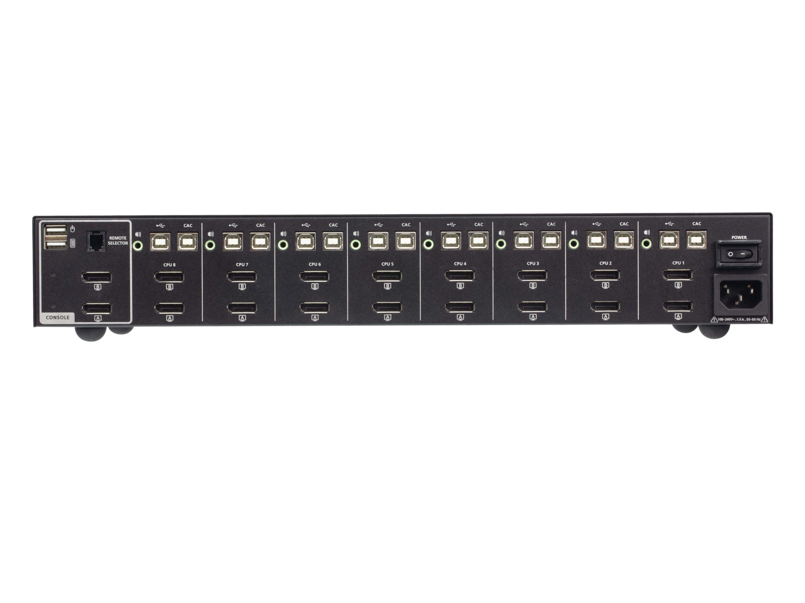 ATEN PSD PP v4.0 Secure KVM Switch CS1148DP4C provides isolation between computer sources and peripherals while sharing a single keyboard, mouse, monitor, speaker set, and Common Access Card (CAC) reader between connected computers of various security classifications. Compliance with PSD PP v4.0 ensures peripheral sharing capabilities provide maximum user data security when switching port focus, preventing unauthorized data flows or leakage between connected sources. Key protections include isolation and unidirectional data flow, restricted peripheral connectivity and filtering, user data protection, configurable device filtration and management, strict audio filtration, and always-on tamper-proof design, keeping sensitive assets isolated and providing advanced security and a user friendly design for instantly secure deployment.