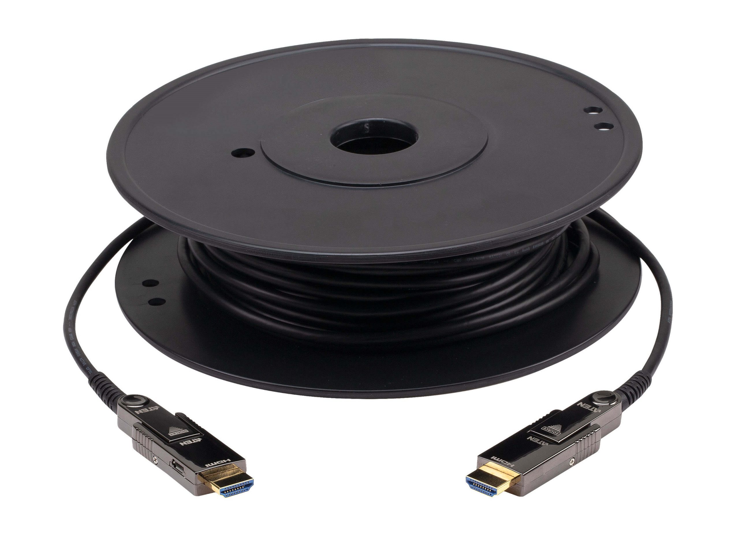 ATEN VE7832A optical cables utilize AOC technology that enable conversion between input signals and output signals for optimum high bandwidth data transmissions. The EMI-resistant optical cables are available in 20 m with full support of True 4K resolutions. They are fully compliant with HDCP 2.2 standards and meet HDMI specifications including 3D, deep color, and data rates up to 18 Gbps. Supporting Dolby True HD and DTS-HD Master Audio, these optical cables guarantee lossless audio signal transmissions.This cable series comes with an HDMI Ethernet Channel (HEC) to combine audio, video, and data streams into a cable, enabling Internet connection sharing and IP-based applications over HDMI. Plus, it supports Audio Return Channel (ARC), allowing audio signal to travel to and from the TV and audio system, thereby reducing the number of cables between the television and external Home Theatre System or soundbar.