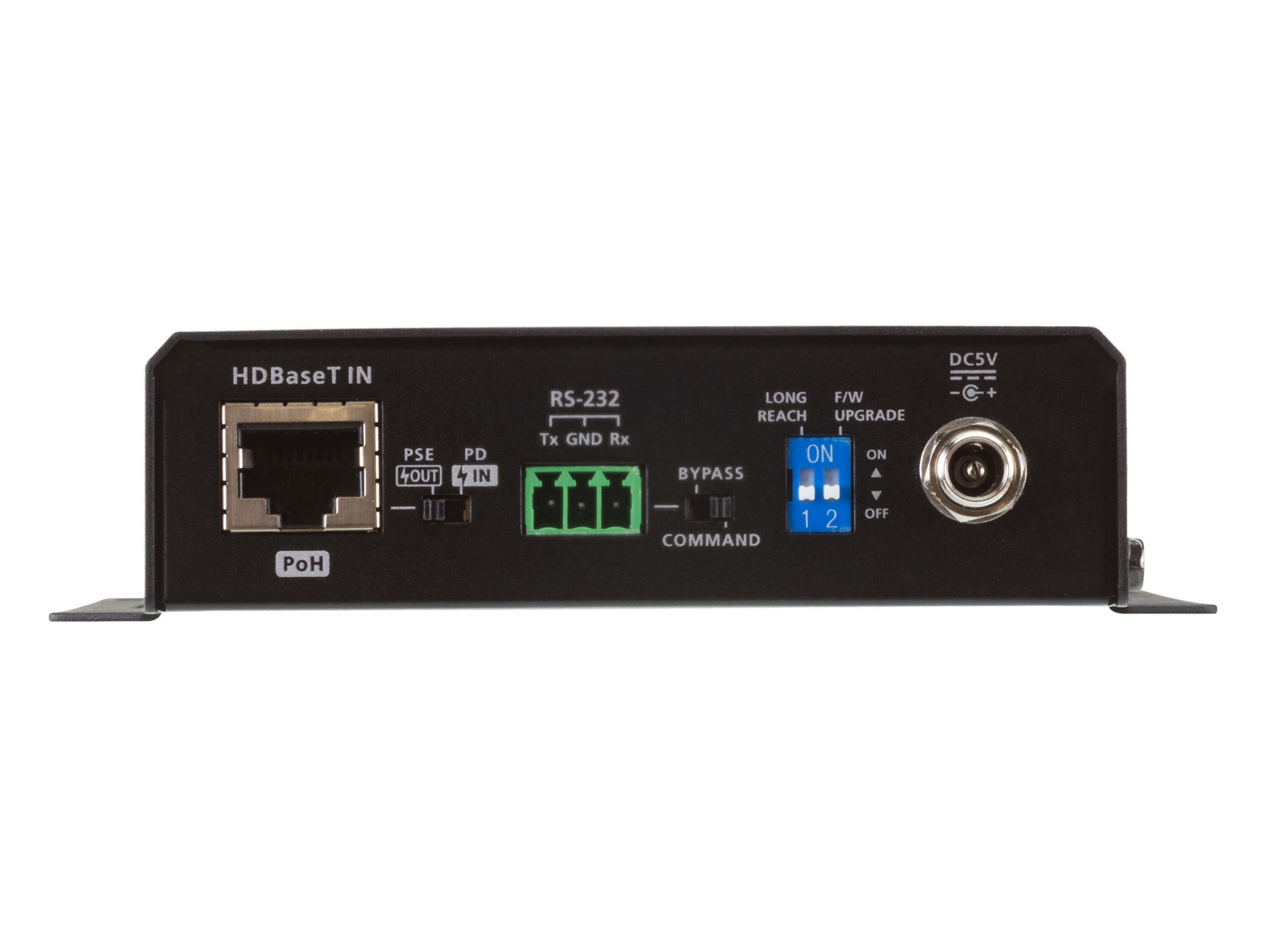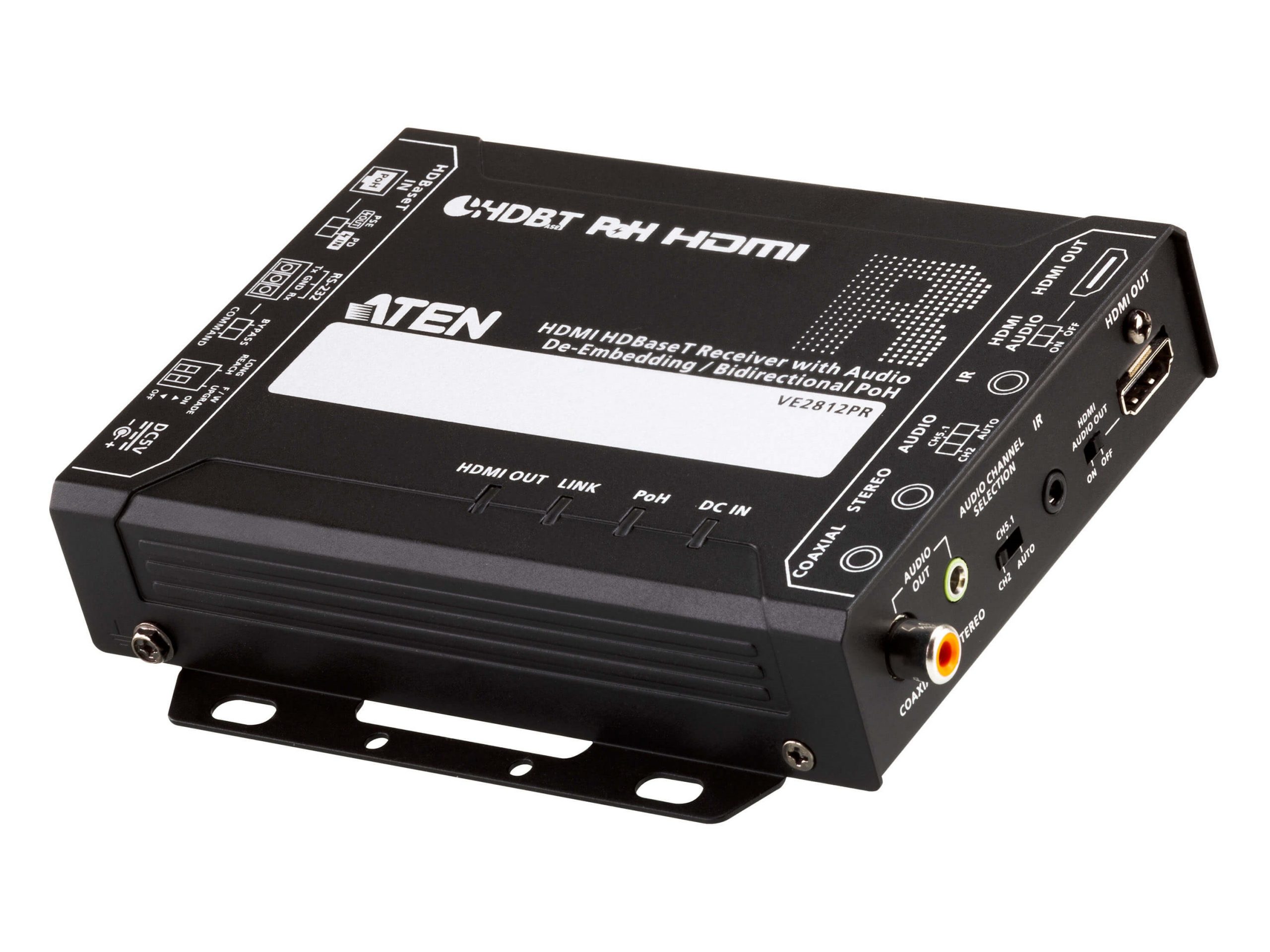 Featuring powerful Class A HDBaseT technology, the VE2812PR is a receiver for 4K HDMI video, audio, and control signals over a distance of up to 100 m via a Cat 5e / 6 / 6a or ATEN 2L-2910 Cat 6 cable. HDMI signal transmission extends further up to 150 m @ 1080p when the HDBaseT Long Reach Mode is enabled.