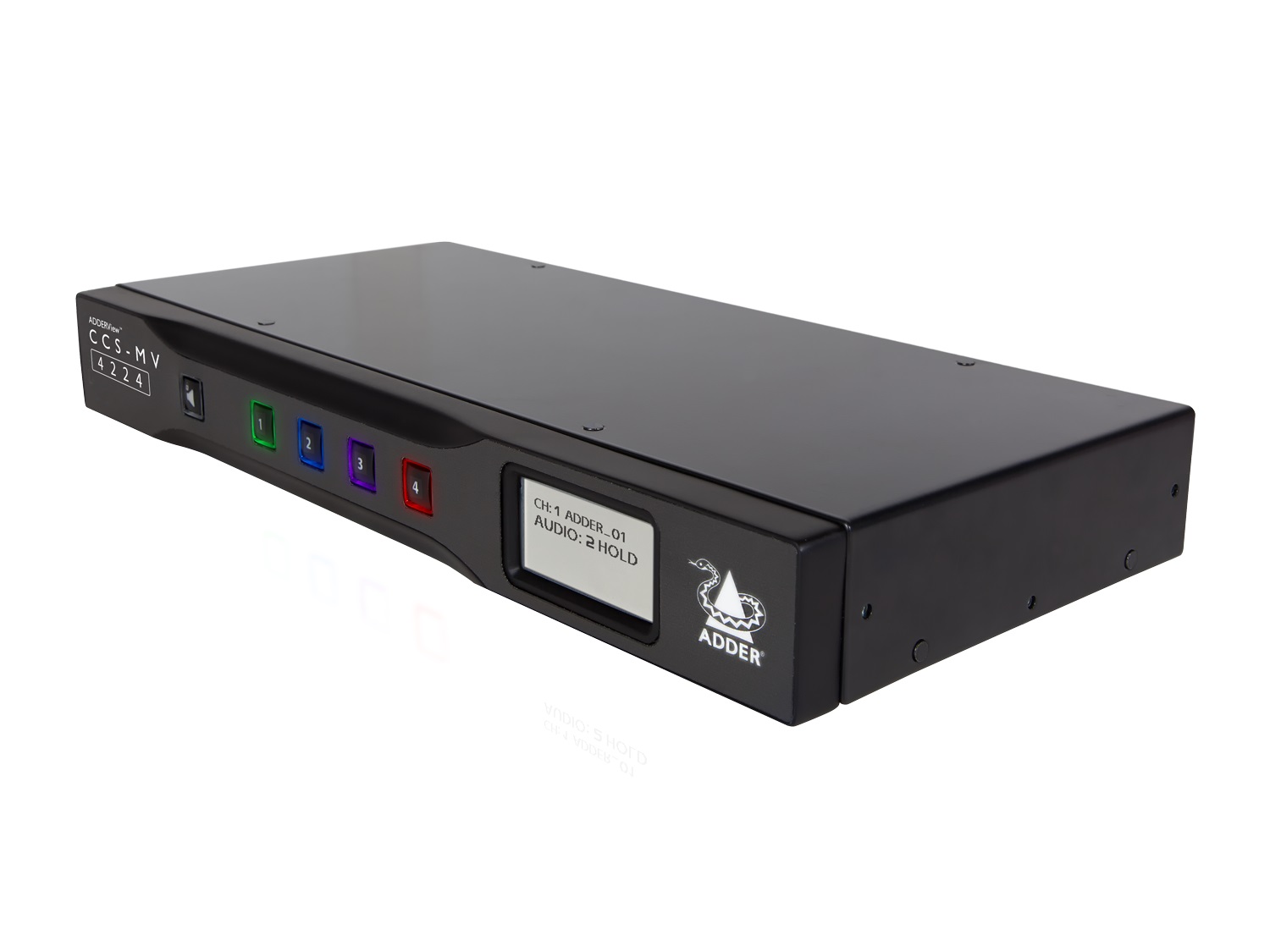 The ADDERView® CCS-MV, a desktop multi-viewer switch, provides simultaneous, real-time 4K KVMA (Keyboard, Video, Mouse and Audio) access of up to four computers from a single workstation. Users can instantly take control of the target computer by simply moving the mouse between windows, providing the experience of a single desktop.