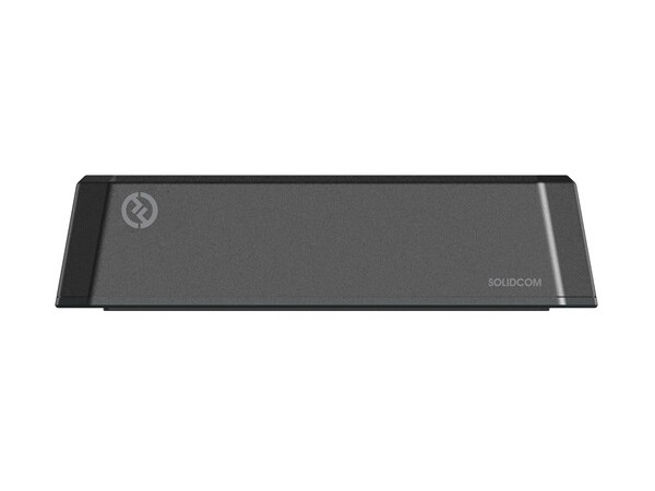 Connectivity options include the supplied AC power supply and a 4-pin XLR adapter for alternative power sources. The base is compatible with Solidcom M1 beltpacks and Solidcom M1 Li-Ion battery packs. No additional data on power I/O or telemetry is specified by the manufacturer in the available documentation.