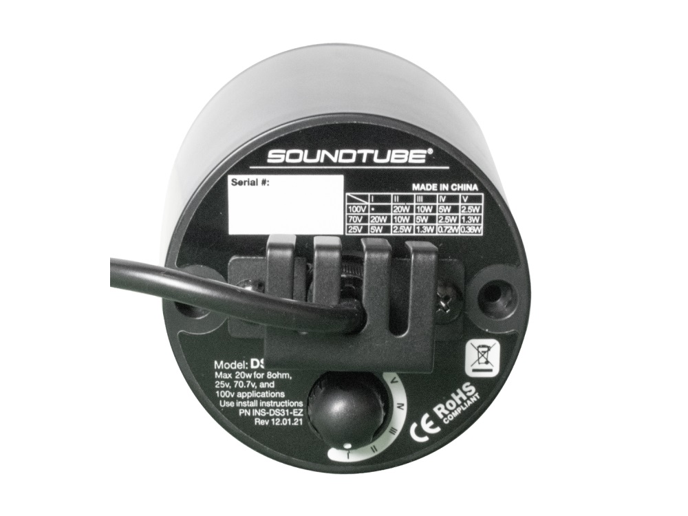 The DS31-EZ is a premium full-range 3-inch pendant-mount speaker with a polypropylene driver and butyl rubber surround for long lasting performance. The DS31-EZ incorporates the ultra-low profile ZeroReflection™ ABS enclosure with a magnetically attached grille with a protective power coated finish. The Designer Sleeve’s IPX6 rating makes it ideal for indoor or outdoor use.