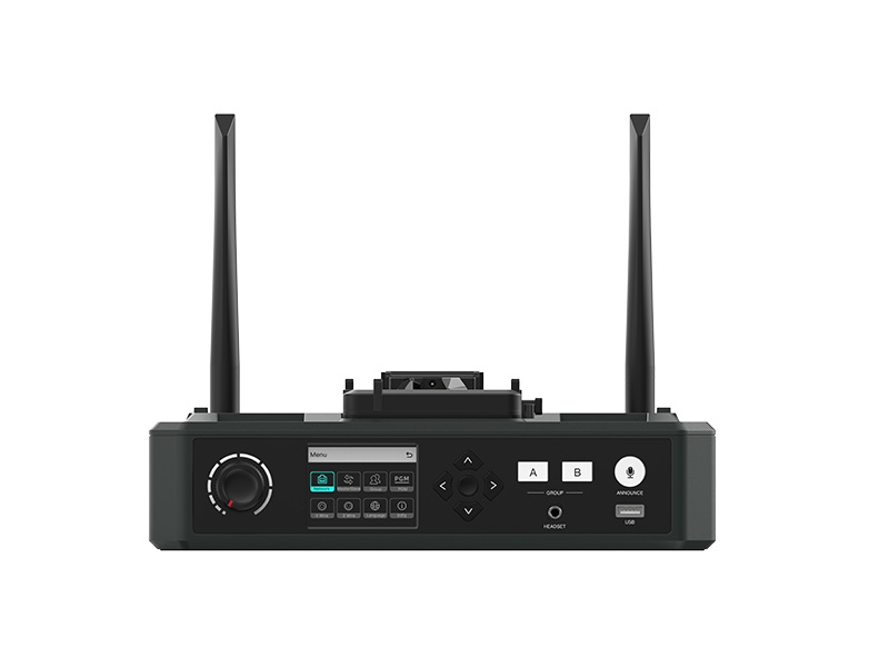 The HUB offers additional features including A/B grouping and an Announce key that mutes all the headsets for emergency messages from the HUB base. The featured UAC (USB Audio Class) function enables the HUB to join in any cloud meeting running on Zoom, Skype, or similar meeting programs via the USB Type-C connection to your personal computer. The HUB provides three bays, allowing multiple battery power supplies from two NP-F batteries and/or one V-Mount or G-Mount battery (batteries available separately).
