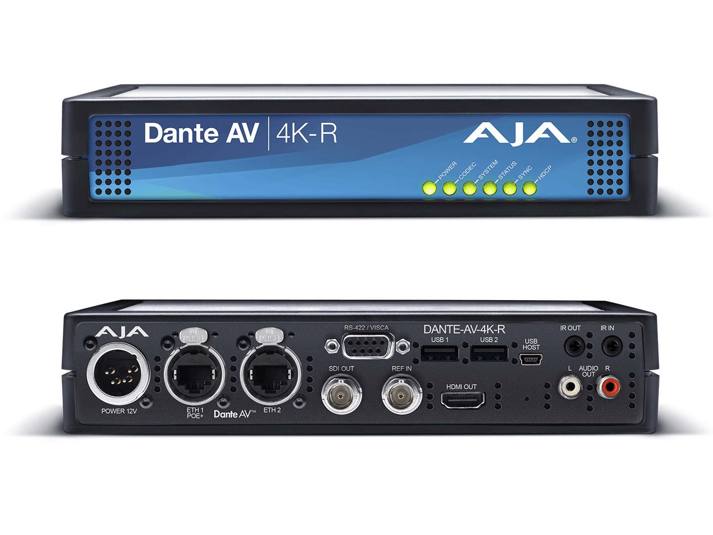 AJA Dante AV 4K-T and Dante AV 4K-R utilize the new Dante AV Ultra solution that enables networked video to be used alongside the industry leading Dante audio-over-IP platform on standard 1 GigE IP networks.
