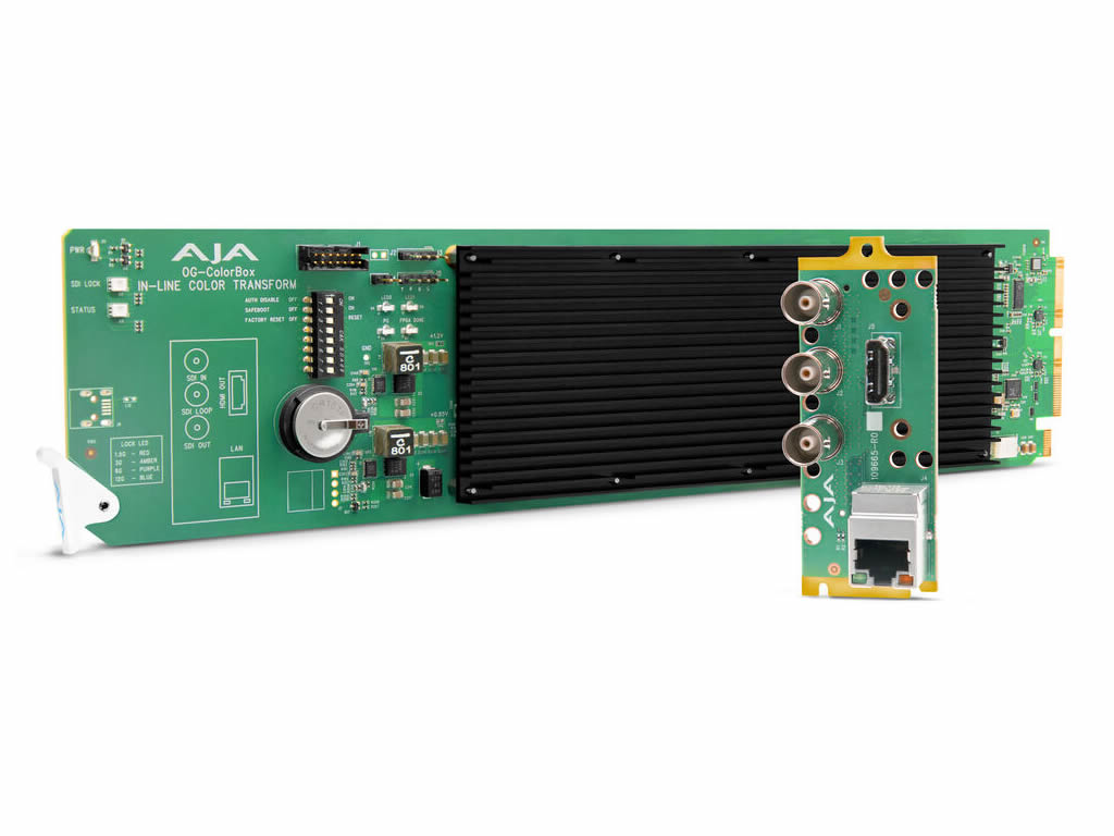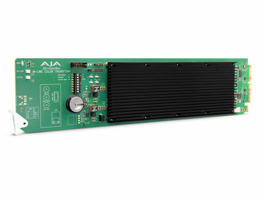 The OG-ColorBox from AJA provides high-performance color conversion and correction with support for HDR, SDR, and Wide Color Gamut signals.