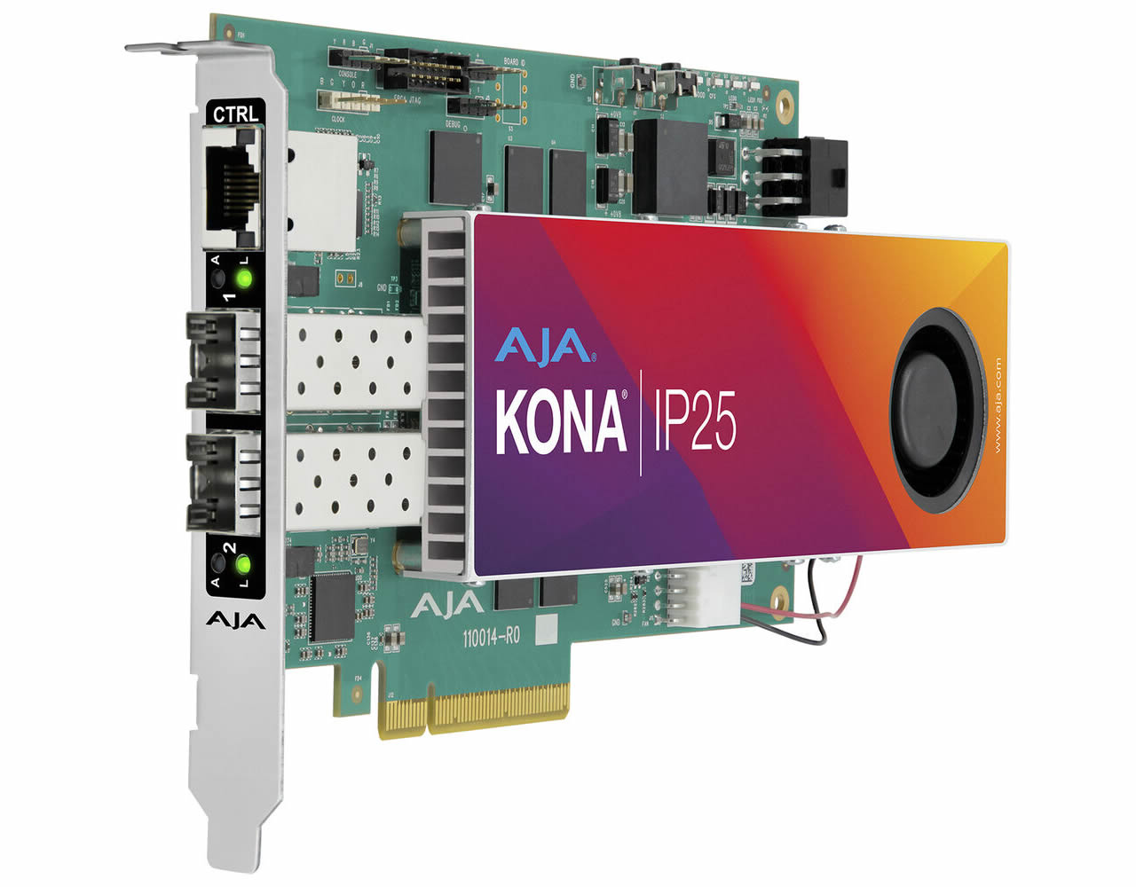 The KONA IP25 SDI to SMPTE ST 2110 IP Bidirectional Converter from AJA provides bidirectional uncompressed video conversion in an 8-lane PCIe Gen 4.0 form. It uses two SFP cages that support 10/25 GbE SFPs and includes a GbE RJ45 port. The KONA IP25 carries the control load instead of placing it on the host PC. It supports SMPTE ST 2110 configuration and control using both in-band and out-of-band control.