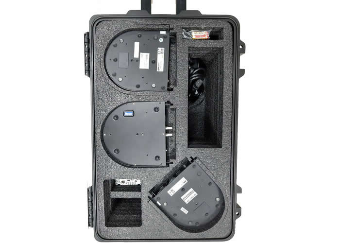 Installation emphasizes plug-and-play operation and field portability – no driver installation is required for laptop HDMI input and PoE support eases PTZ camera deployment. The switcher and monitor are rackable or road-case portable and the system ships with dedicated wheeled cases and mounts to protect gear during travel. Firmware updates, touchscreen configuration, and user memory presets simplify system commissioning and rehearsal setup.